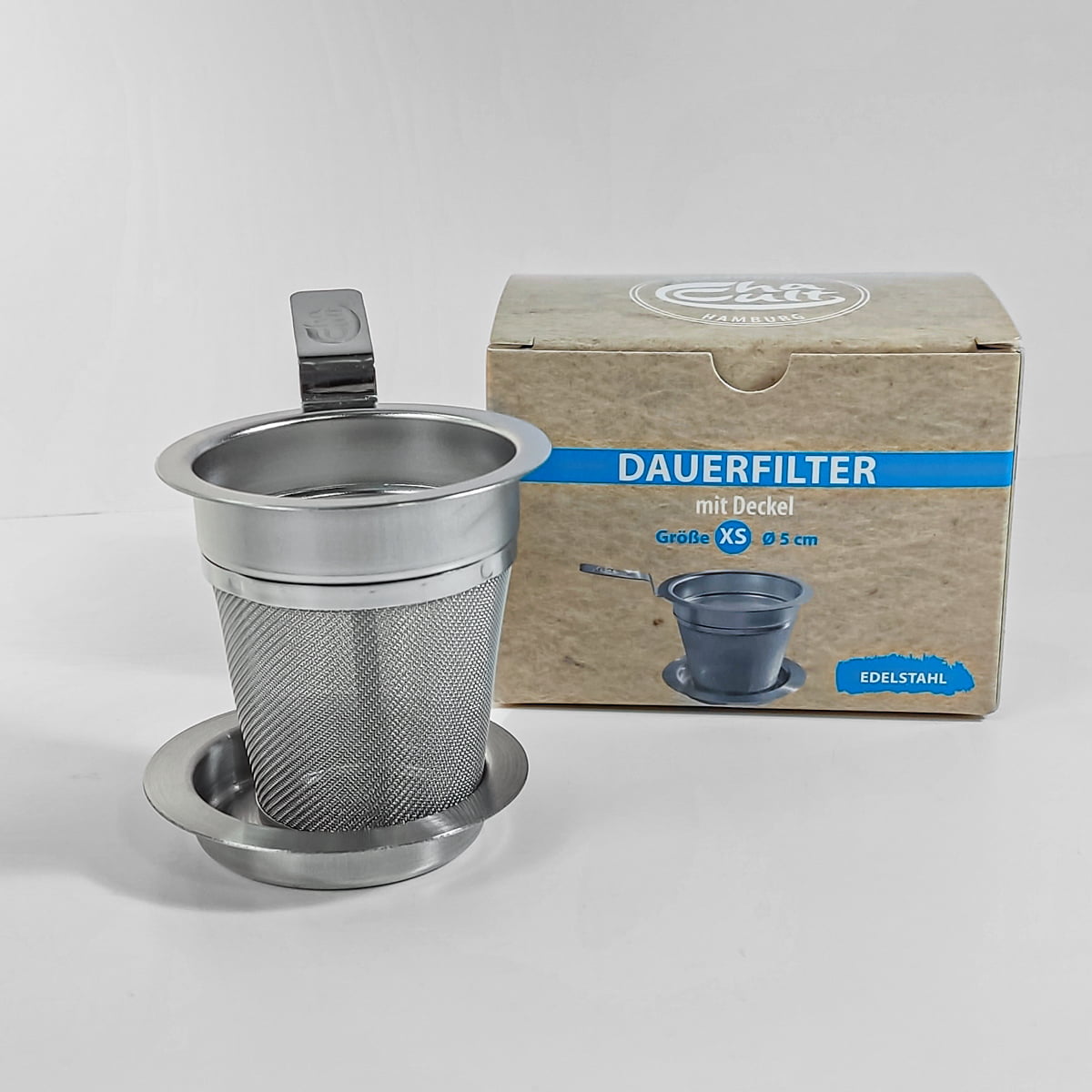 Filtro de Té ChaCult Tea Filter. Filtro de acero de mayor comodidad y calidad. Para la fabricación de este filtro se utilizan materias primas cuidadosamente seleccionadas. La maya de acero inoxidable muy fina garantiza una infusión de té perfecta y permite que el sabor se desarrolle de forma ideal. Después de la infusión, se puede colocar el filtro húmedo sobre la tapa para evitar que se derrame el líquido sobrante. Este filtro de alta calidad y duradero es fácil de limpiar y apto para meter en el lavavajillas. También es adecuado para tazas de té pequeñas de unos 5cm de ancha.