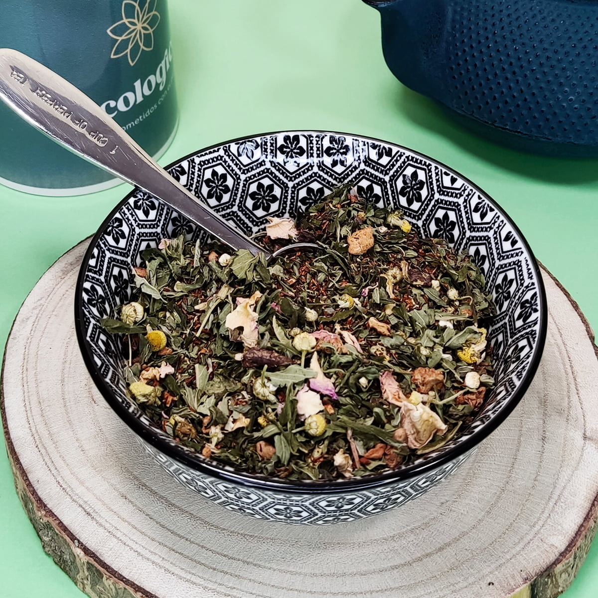 Menta: La frescura y vitalidad de la menta se unen a esta mezcla para aportar un toque de energía y mejorar la digestión.