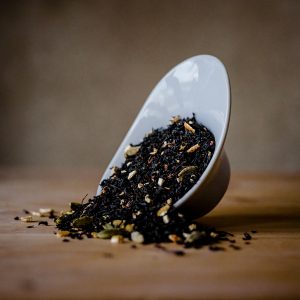 Té negro (75%), canela, cáscara de naranja, jengibre, clavo, cardamomo verde, pimienta negra triturada, aroma natural. Puede contener trazas de GLUTEN, HUEVO, CACAHUETES, SOJA, LECHE, FRUTOS DE CÁSCARA, SÉSAMO Y SULFITOS